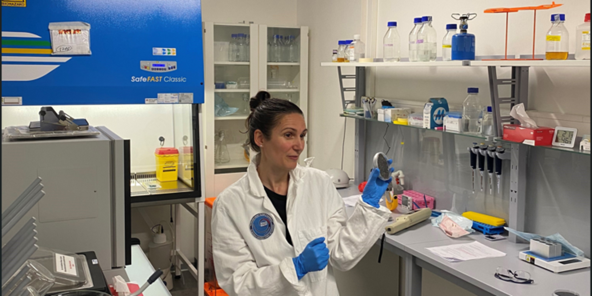 Dr. Christina Giger bei der Eröffnung des mikrobiologischesn Analyselabor der Hochschule Luzern